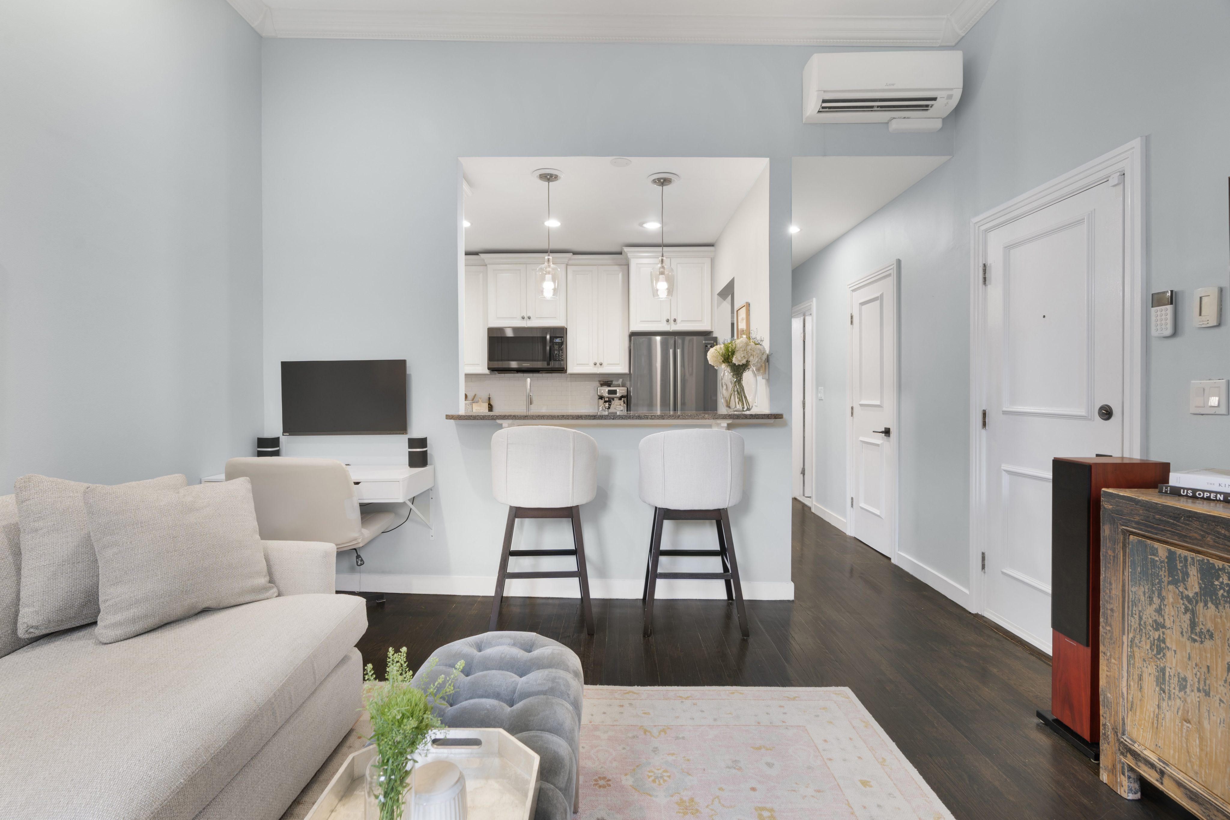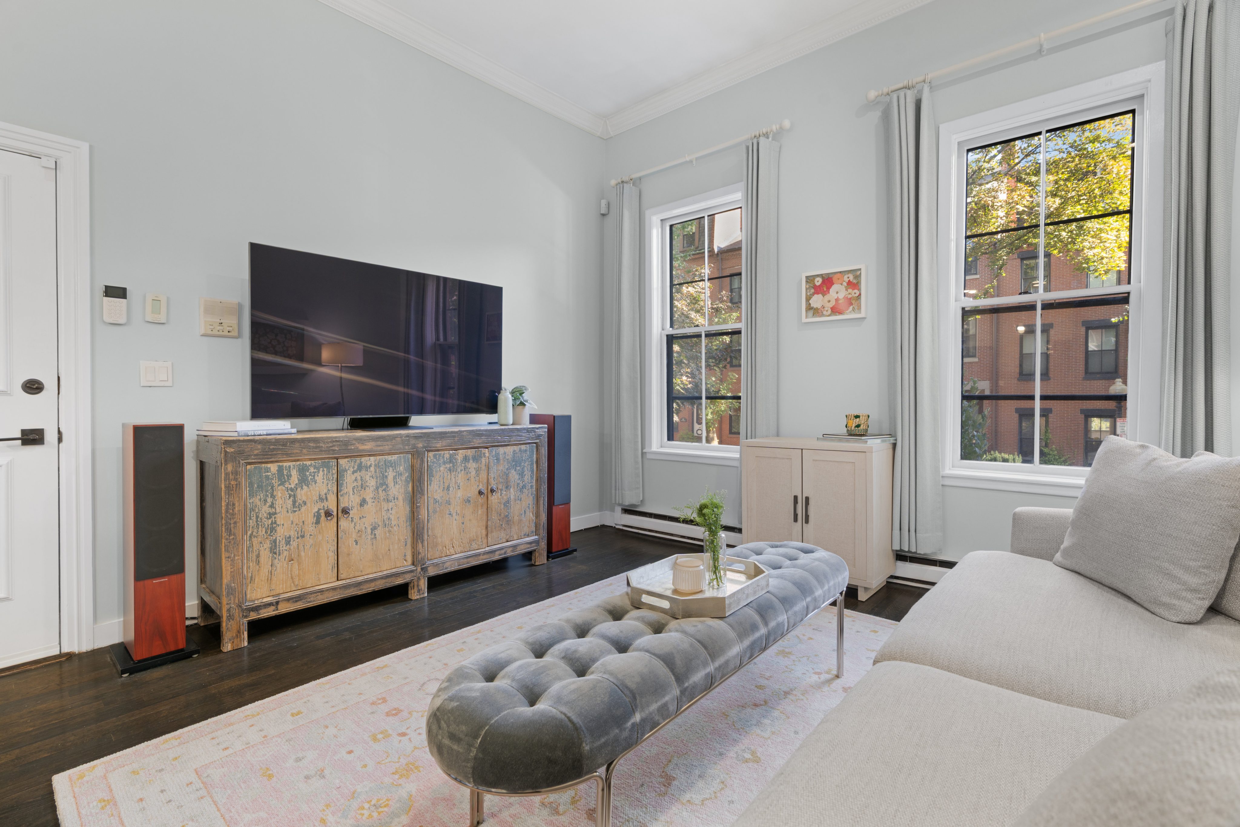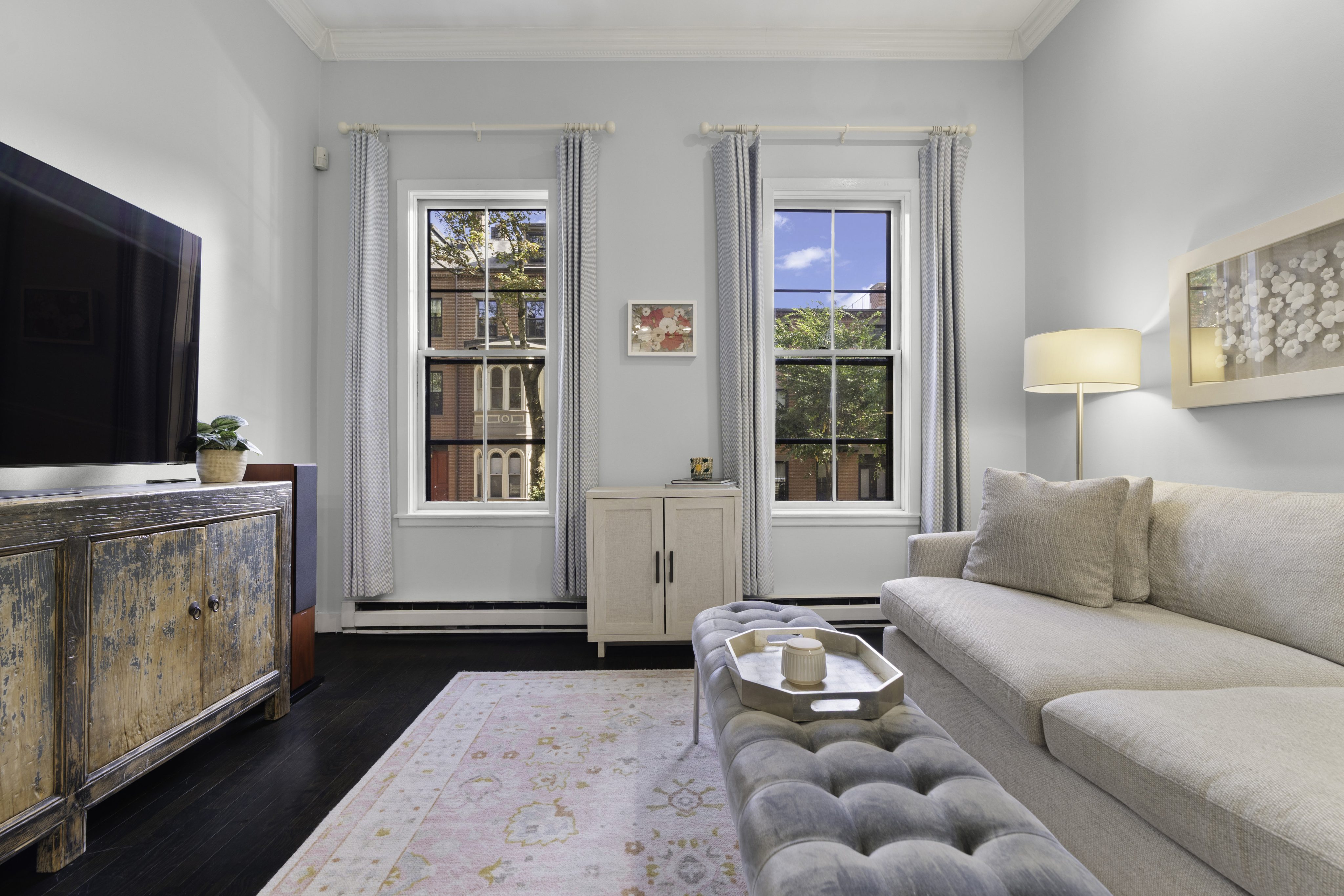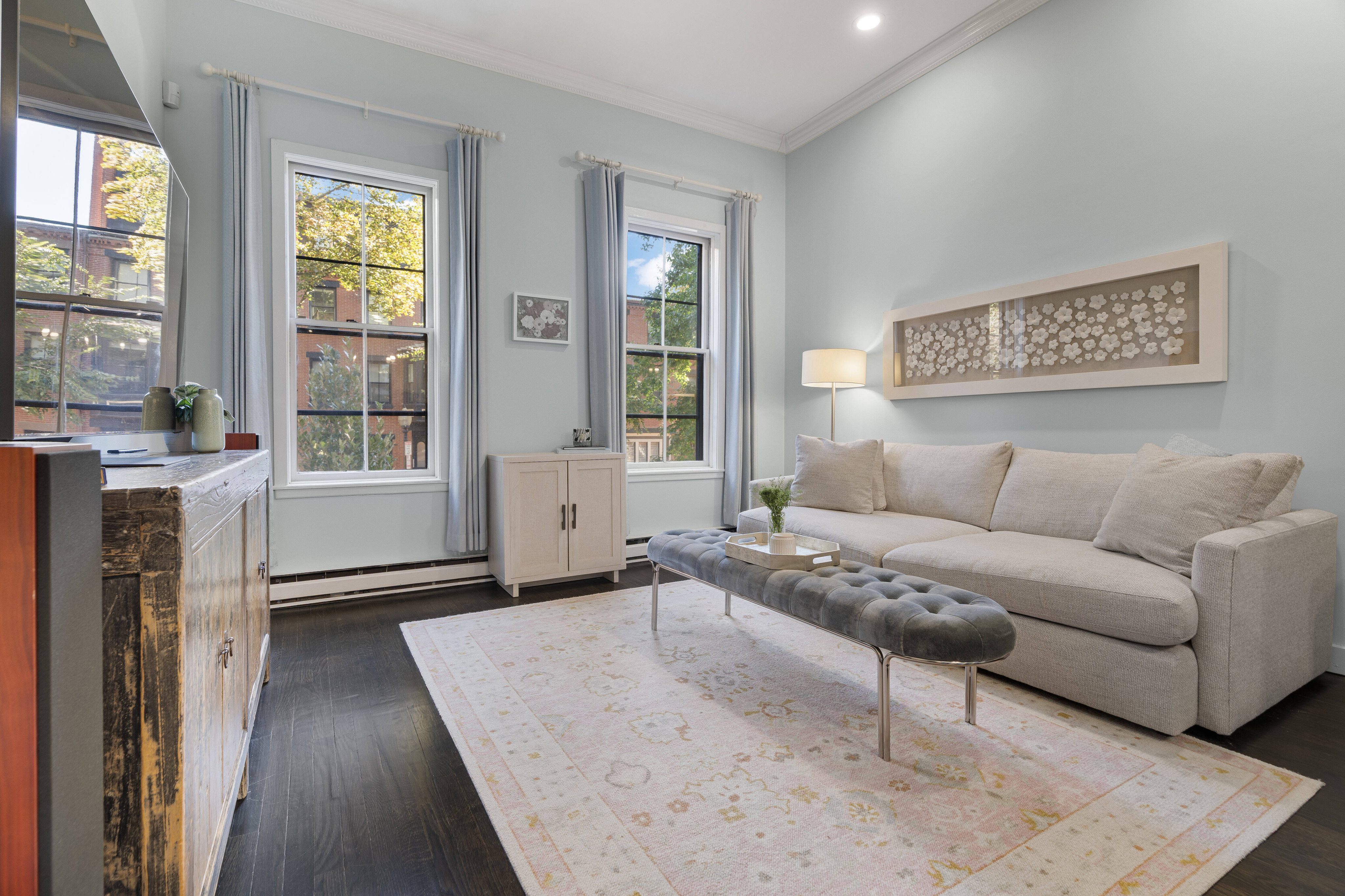 This pristine parlor-level 1-bedroom, 1-bathroom home offers the perfect blend of charm, comfort, and functionality—nestled right in the heart of the South End. The spacious living area features soaring ceilings and oversized windows that flood the space with natural light, creating an inviting atmosphere ideal for relaxing, entertaining, or working from home.