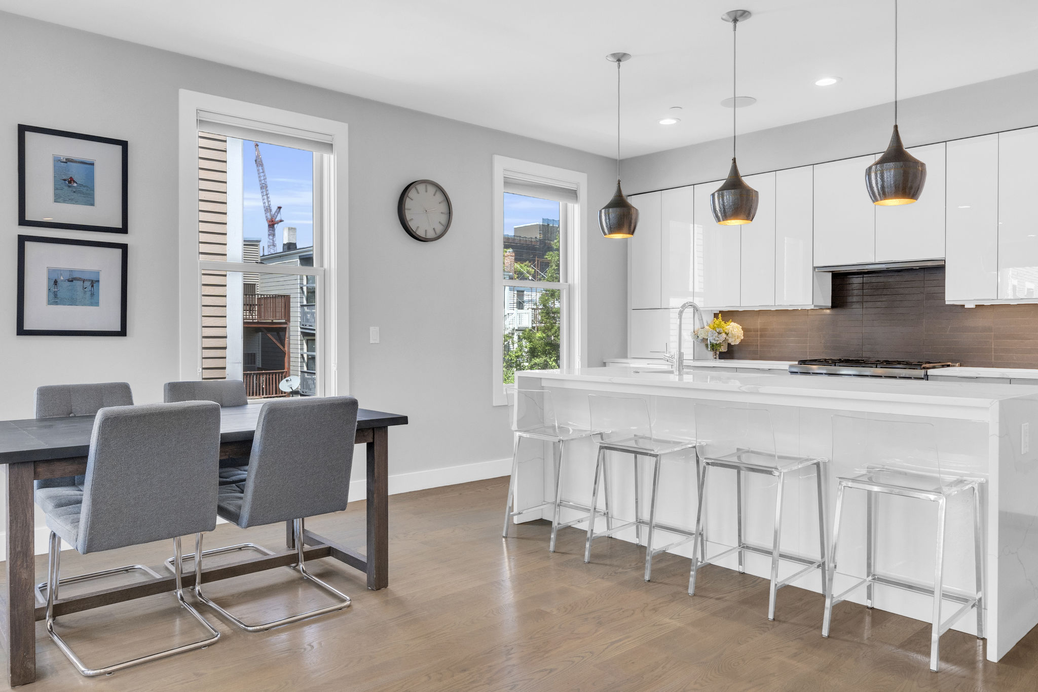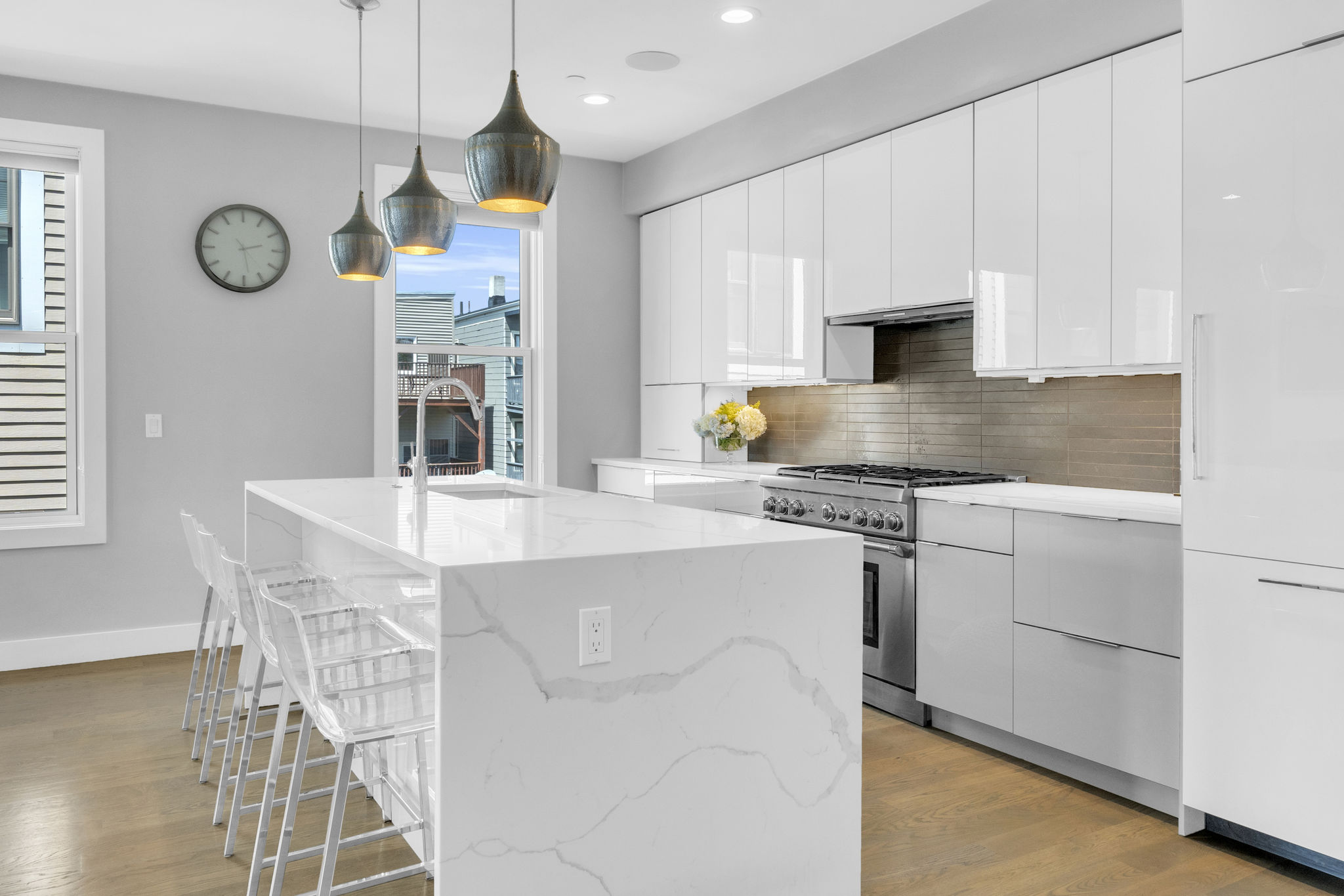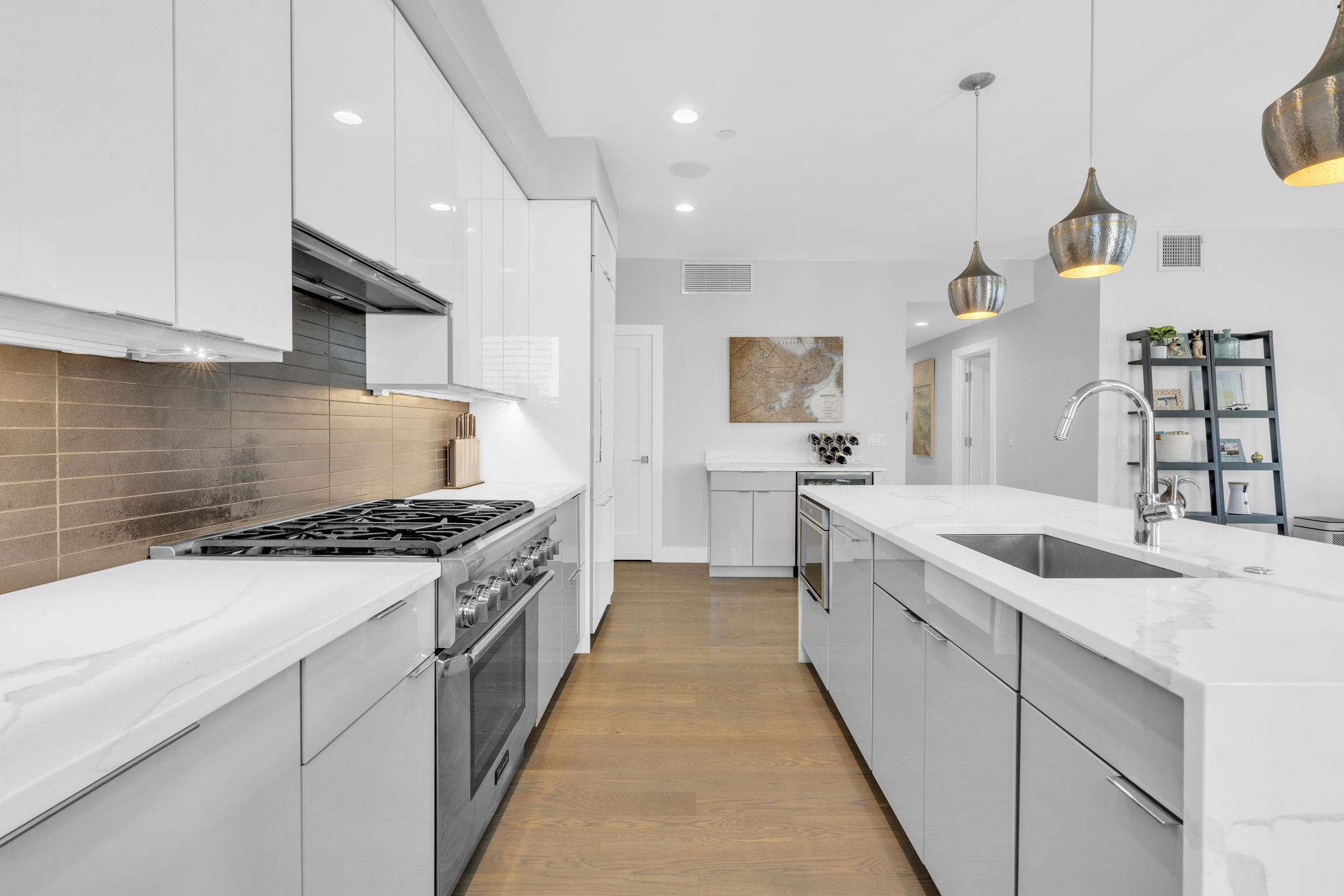 The extraordinary opportunity of owning in 584 East Third Street doesn't come around often. Timelessly designed and impeccably built this 2 bedroom, 2 bathroom third floor condominium with 2 garage parking defines South Boston Living. Featuring expansive living space that showcases breathtaking windows, an abundance of natural light and ample space for and oversized dining room table. The immaculate kitchen features custom cabinetry, Thermador appliances and gleaming quartz counters complete with a waterfall edge. Offering a stunning primary suite complete with a custom California Closet walk-in. Designer bathrooms features Porcelanosa tile, designer plumbing fixtures and Restoration Hardware lighting. Full sized washer / dryer in unit, TWO direct-access garage parking spaces, surround sound speakers, professionally managed condo association and blocks from everything South Boston has to offer!