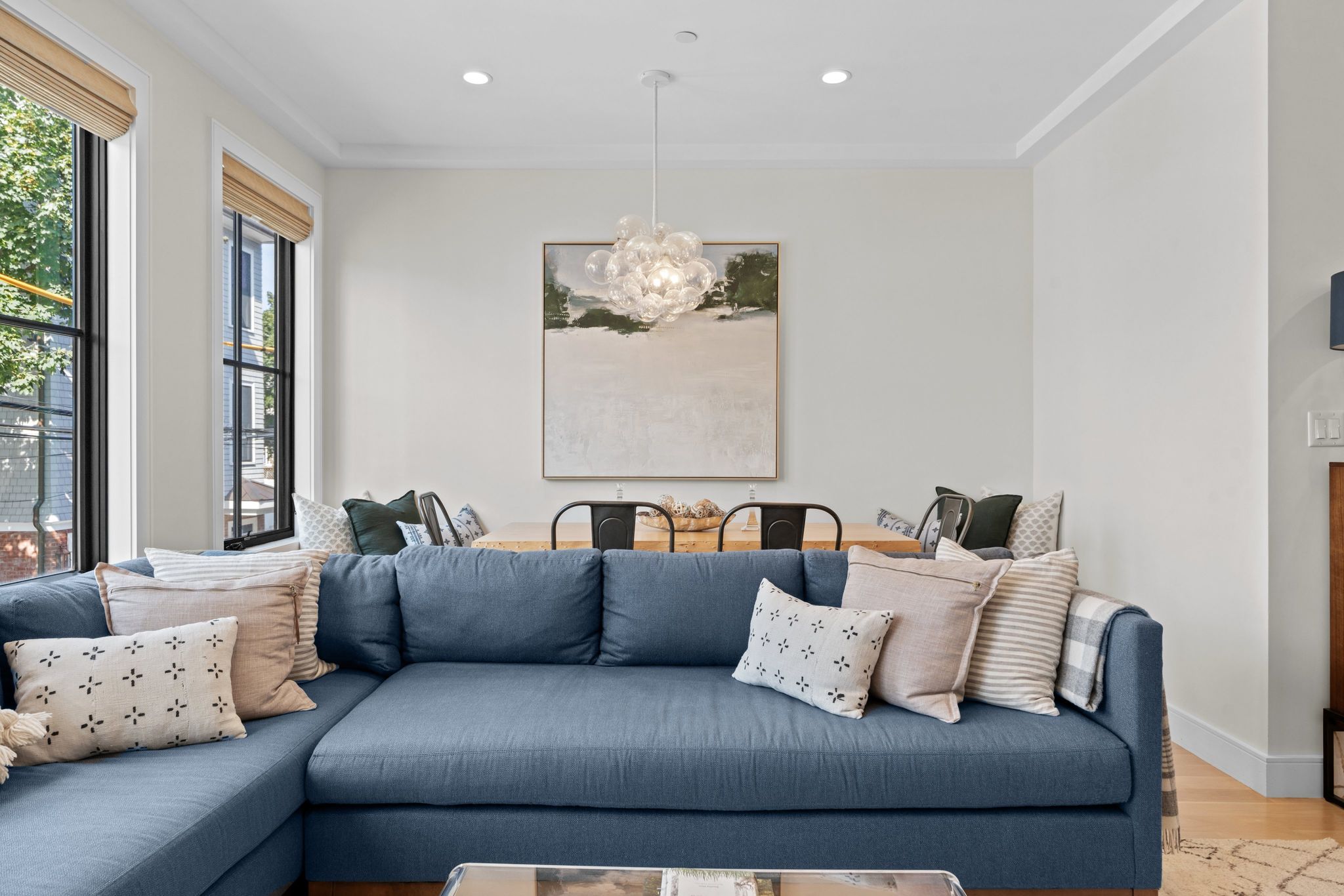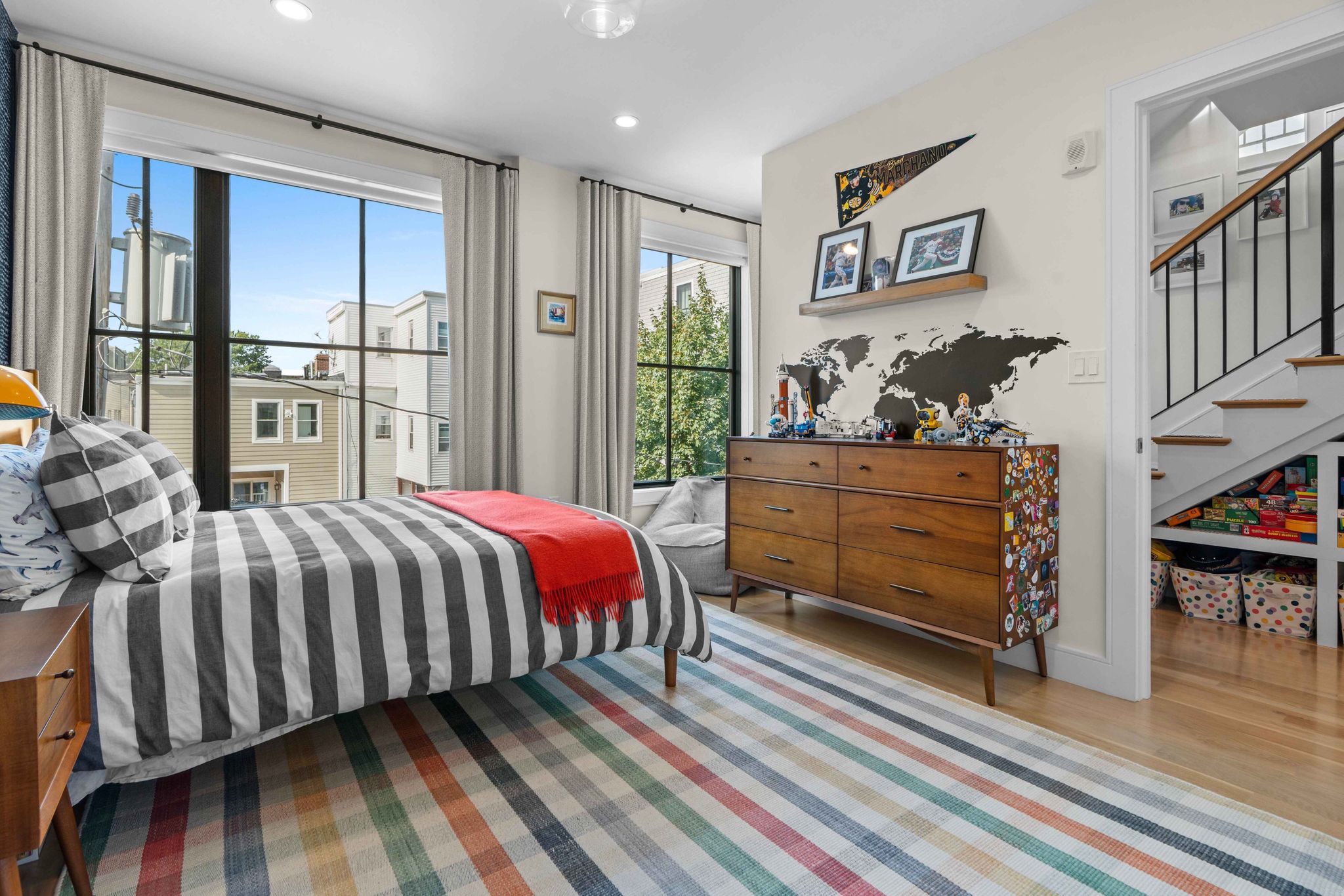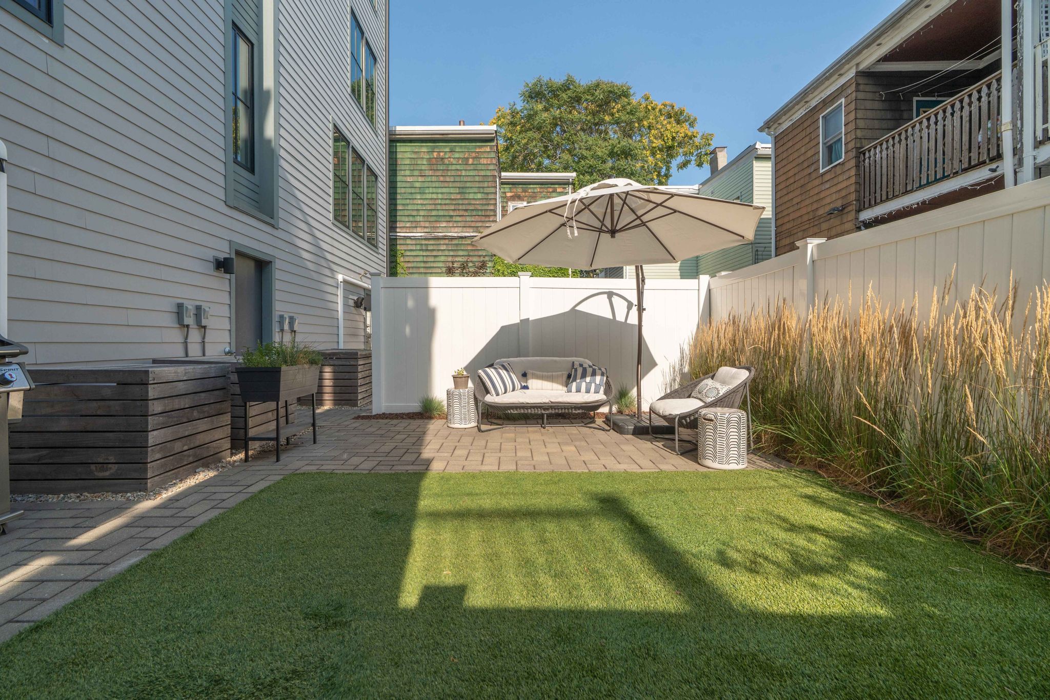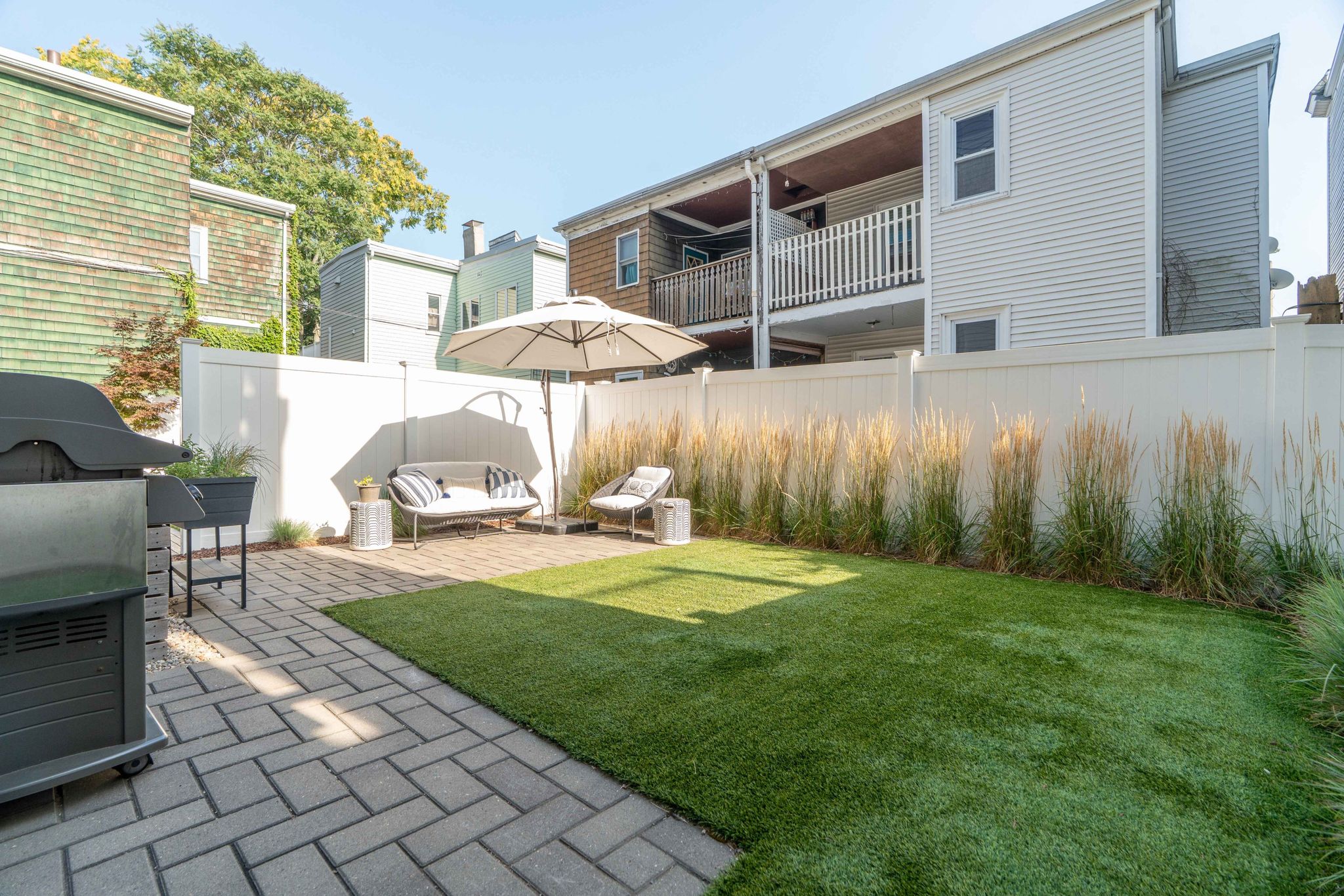 This meticulously designed South Boston townhome is an urban oasis offering luxury, space and style. This expansive home features 4 bedrooms, 3.5 bathrooms, private roofdeck, enormous fenced-in backyard and rare 2 car garage parking. Enter through your private garage into a dedicated mudroom, complete with custom built-ins. Upstairs the main living level impresses with a designer kitchen featuring Thermador appliances and added pantry. The open-concept layout flows seamlessy into the large dining area and sunlit living room, anchored by a gas fireplace. A stylish half-bath completes this level.
