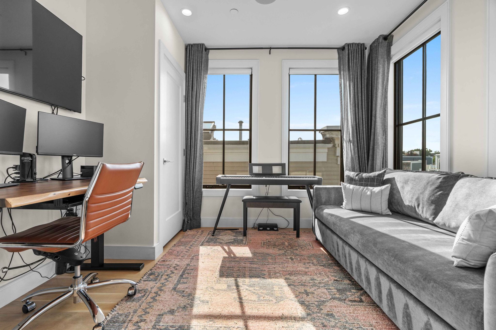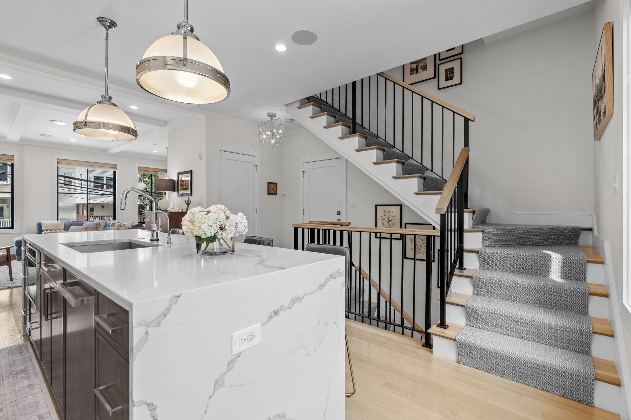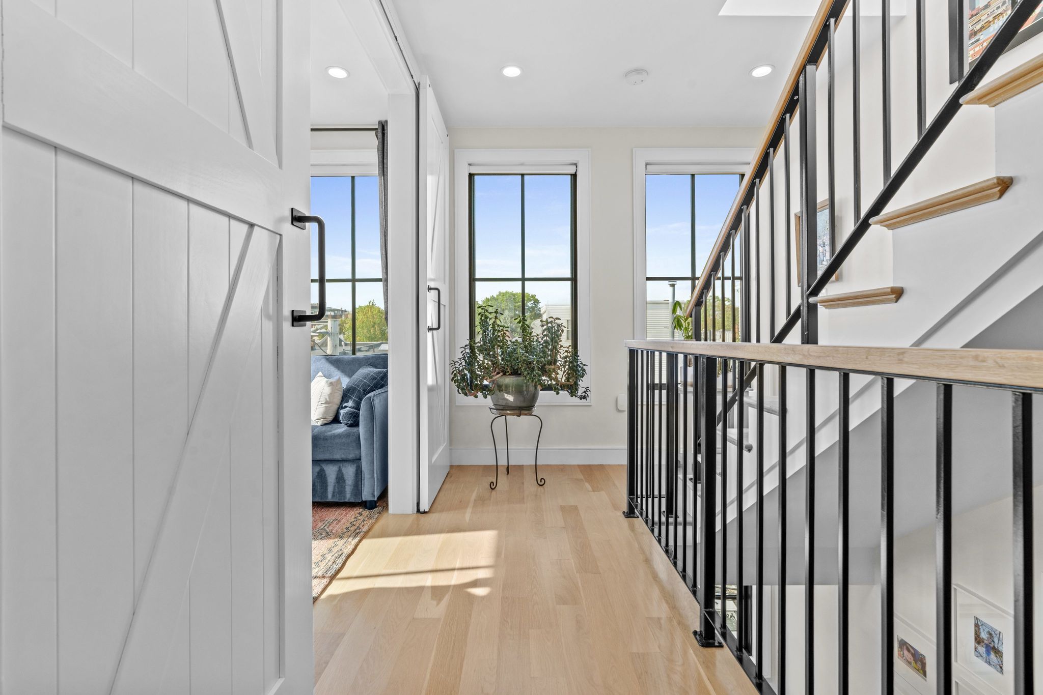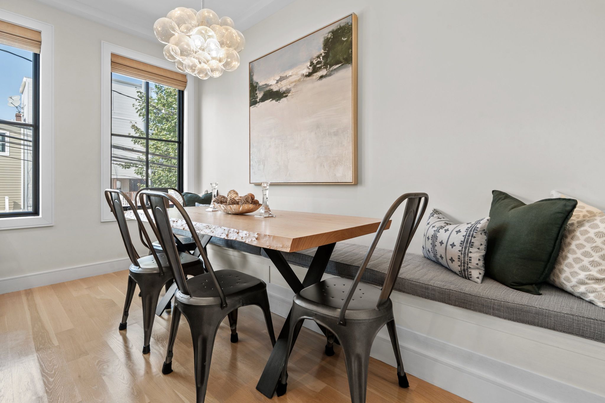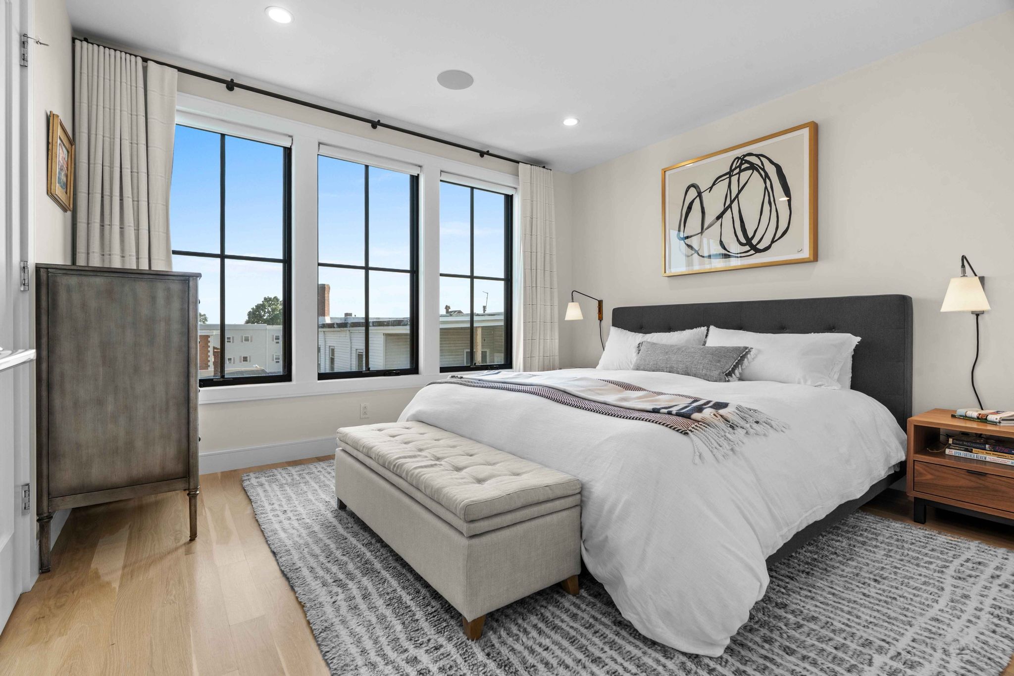 This meticulously designed South Boston townhome is an urban oasis offering luxury, space and style. This expansive home features 4 bedrooms, 3.5 bathrooms, private roofdeck, enormous fenced-in backyard and rare 2 car garage parking. Enter through your private garage into a dedicated mudroom, complete with custom built-ins. Upstairs the main living level impresses with a designer kitchen featuring Thermador appliances and added pantry. The open-concept layout flows seamlessy into the large dining area and sunlit living room, anchored by a gas fireplace. A stylish half-bath completes this level.