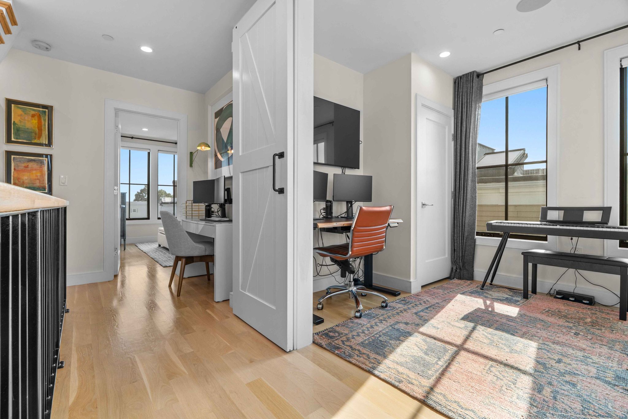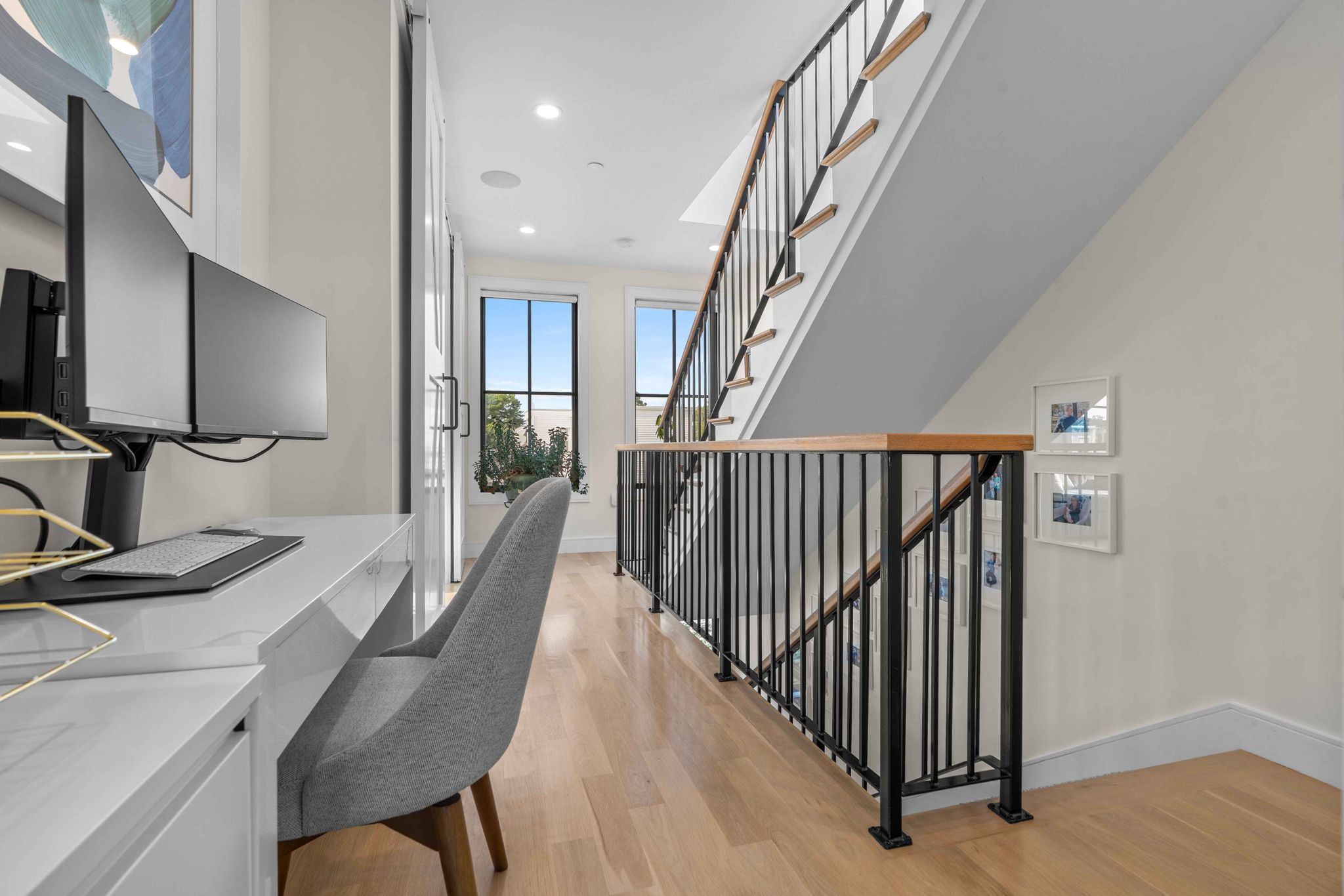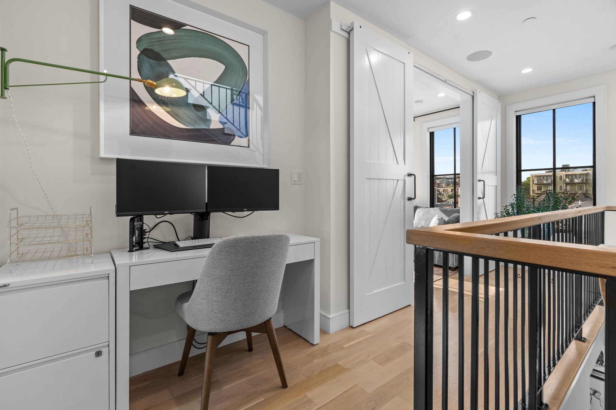 The next floor offers two generously sized bedrooms, including one with an ensuite bathroom, along with an additional full bathroom and spacious laundry room.The top-level primary suite is a true retreat, boasting a spacious walk-in closet and spa-like ensuite bathroom with double vanity. The fourth bedroom is down the hall.